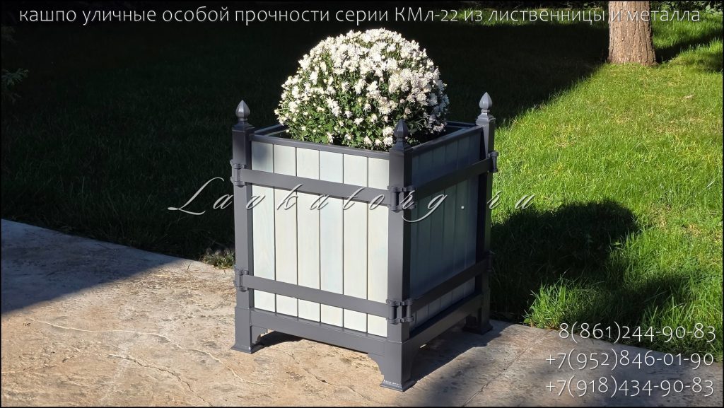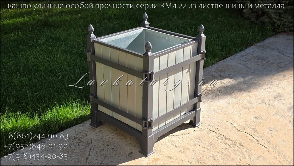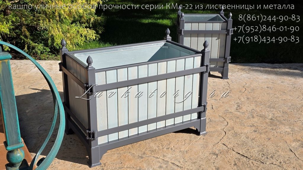 Кашпо уличные особой прочности из дерева и металла КМЛ-22