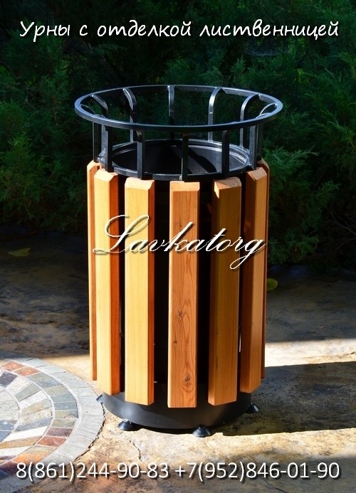 - Урны парковые для мусора УМл-2к — металлический корпус и лиственница