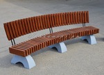 Скамейки полукруглые из лиственницы на бетонных и стальных опорах.