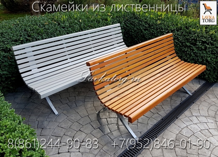 Современные парковые скамейки из лиственницы со спинкой и без спинки